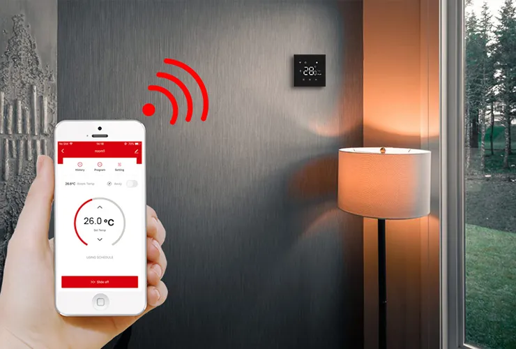 Compatible with both heating and cooling systems, this smart thermostat gives you total control — keeping you warm in winter and cool in summer, wherever you are.
