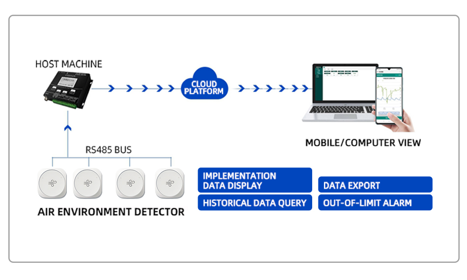 Advanced multi-functional detection with professional-grade intelligence — accurately detects CO2, PM2.5, temperature, humidity, and TVOC. Additionally, HOHC detection is customizable.