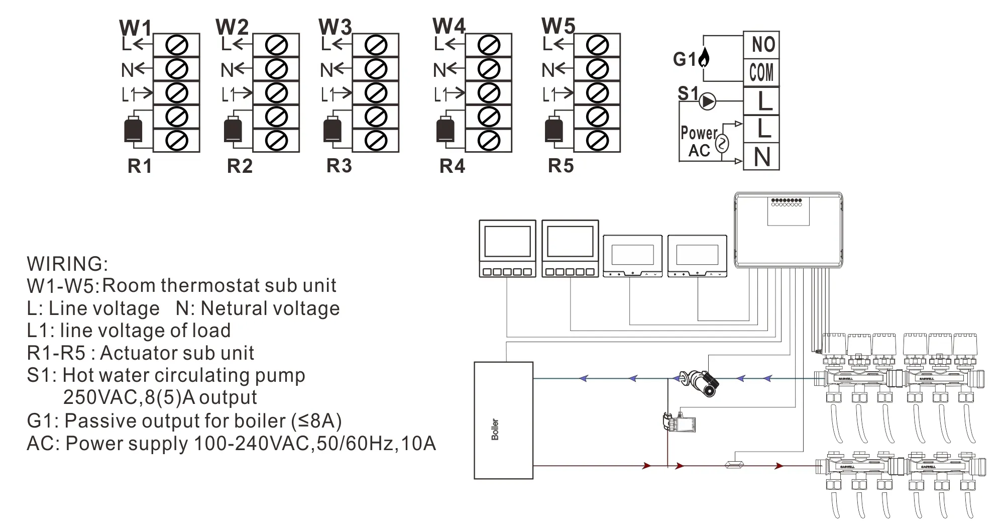 Thermo actuator: 5X230VAC, Max 2A per output, Max 5A in total