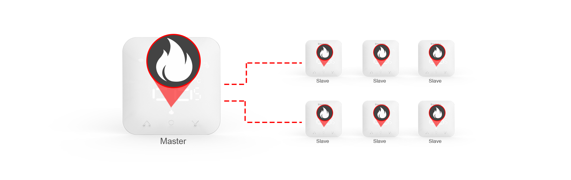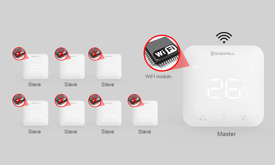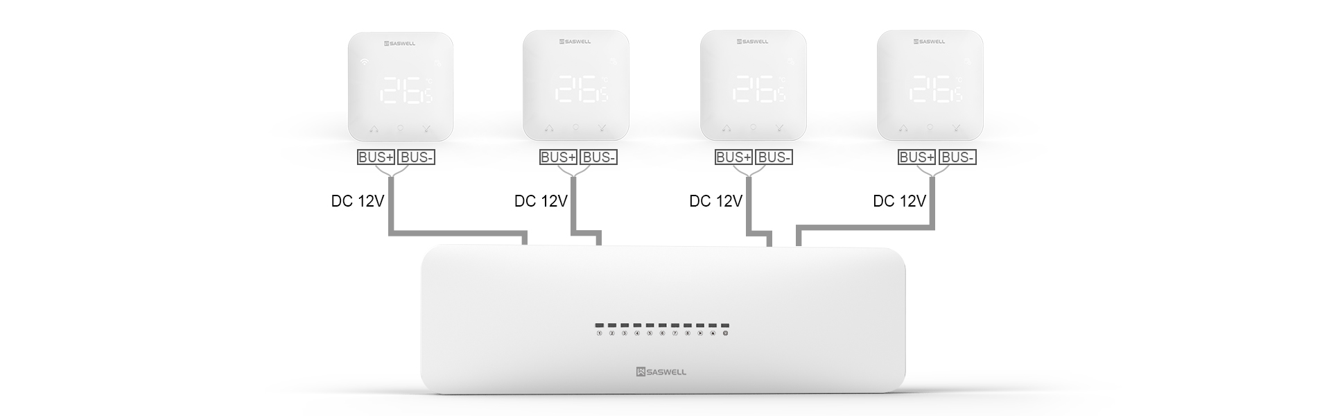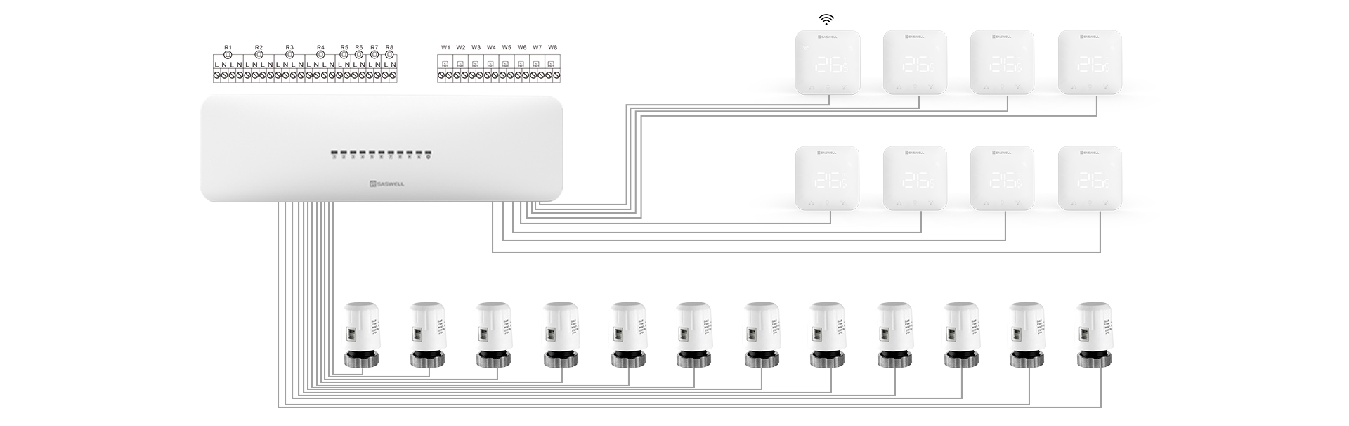 Water underfloor heating thermostat with heat pump control SAS931X. Auto, cool and heat mode suitable for heat pump system.
