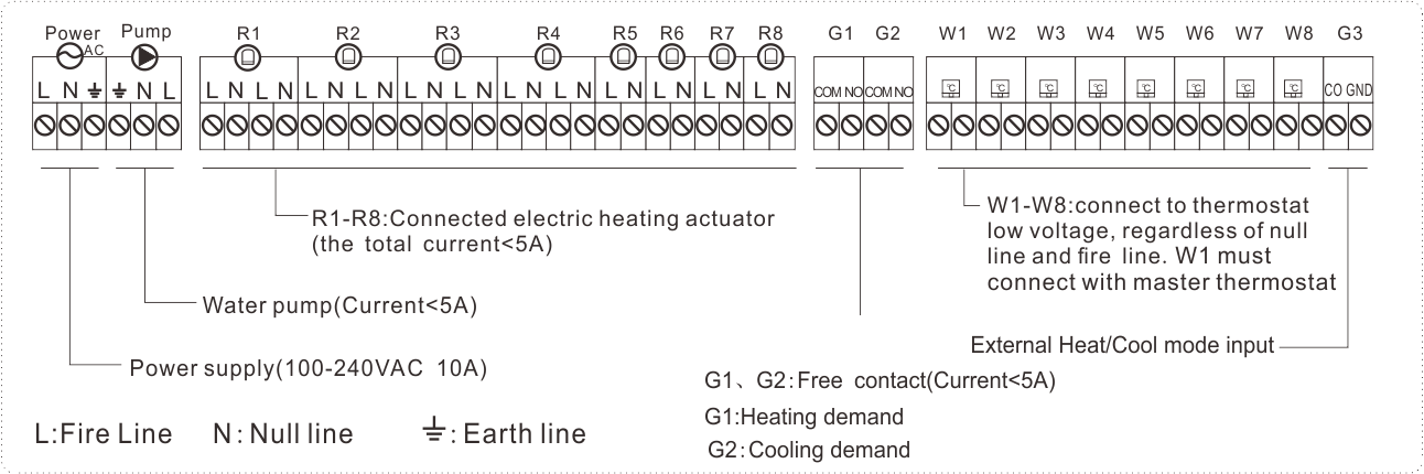 | Model No. | Heat/cool | Heat only | Pipe | Speed fan | Programmable | Window card | Room card | External Sensor | Modbus RTU | WIFI | Power | Manual |
