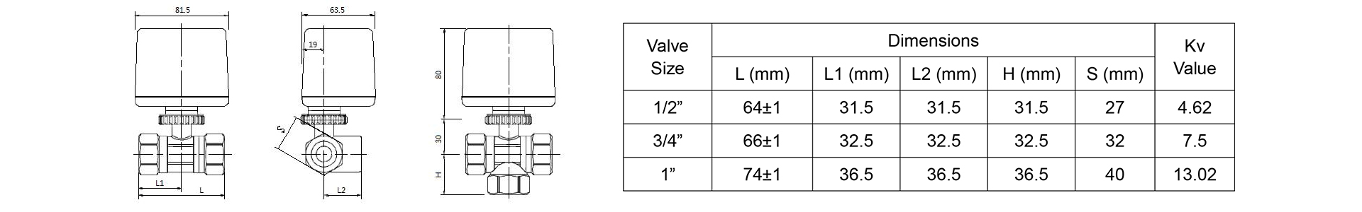 | SV80 | 2MPa | 1MPa | 3-point control 24VAC or on/off |
