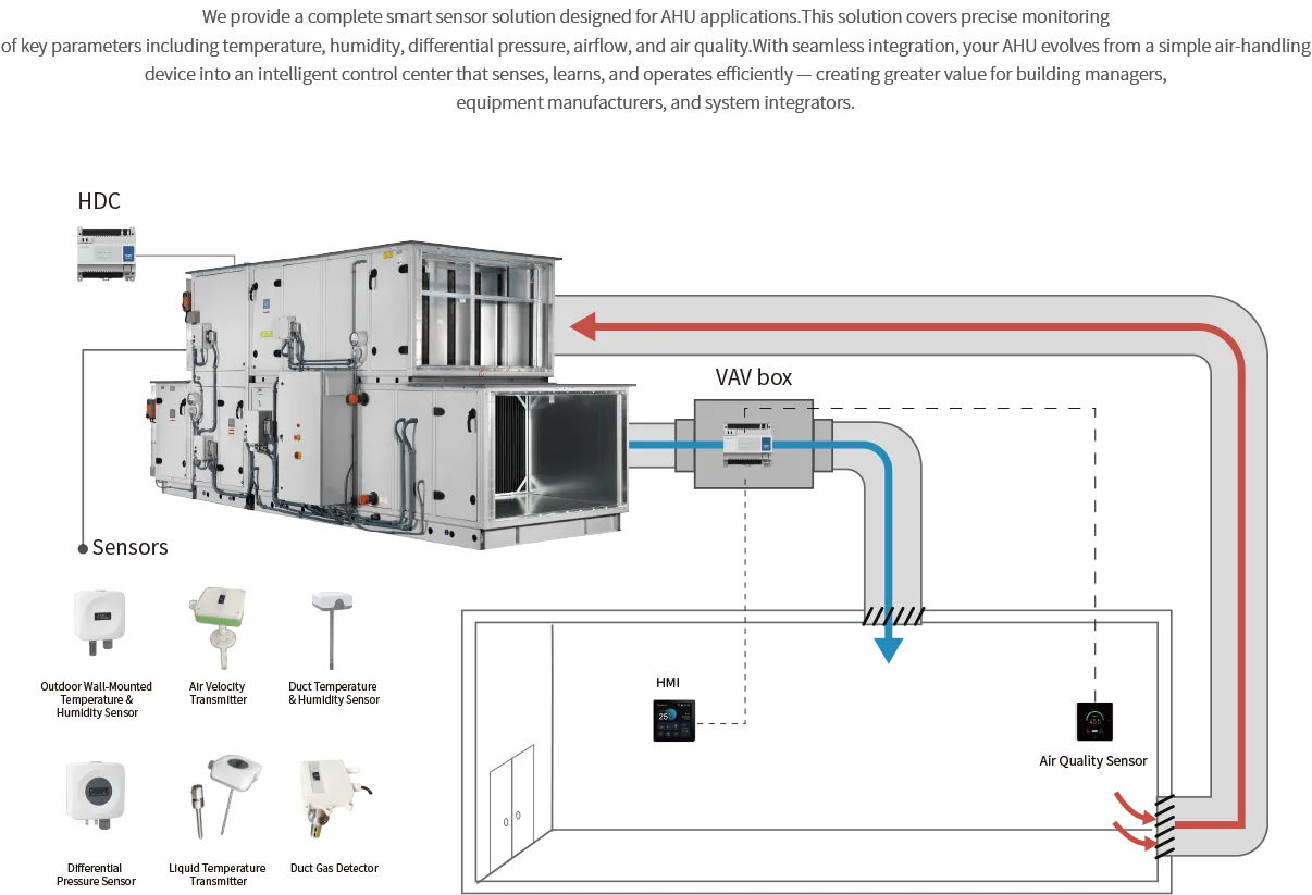 Supporting Modbus RTU and other communication protocols, the product integrates seamlessly with building automation systems (BAS) or existing AHU controllers, offering maximum flexibility.