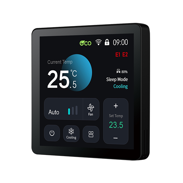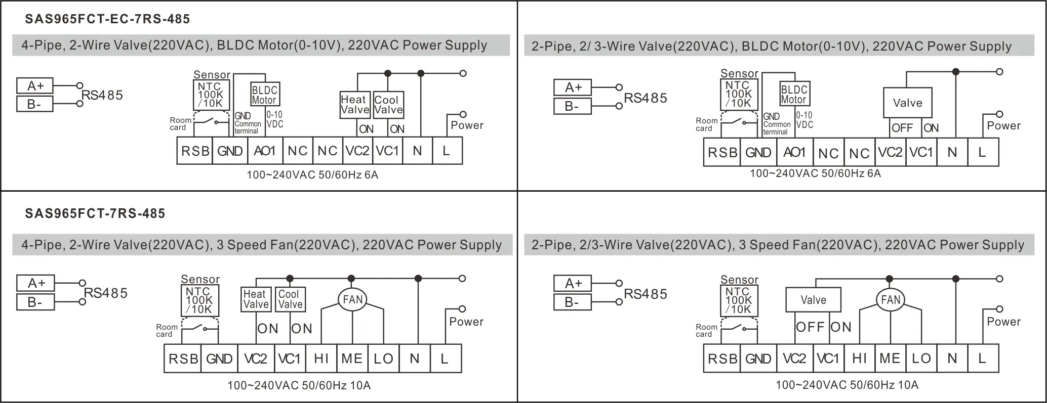 The SAS965FCT is a 4-inch full touch screen thermostat designed for fan coil unit (FCU) systems. It supports WiFi and Modbus RS-485 communication, offering precise control, energy monitoring, and multiple comfort modes for modern HVAC solutions.