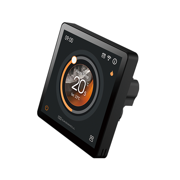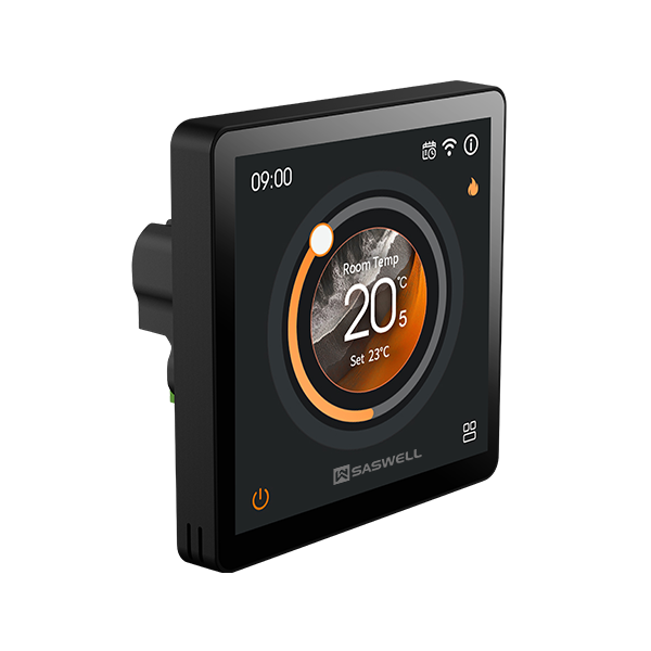The SAS965WHL is a smart color touchscreen water heating thermostat designed for residential homes and commercial spaces. Featuring a large 4-inch display, it offers intuitive temperature control and real-time energy monitoring via a mobile app.