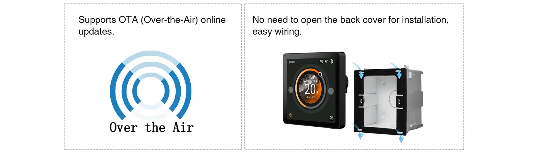 Upgrade your electric underfloor heating with our Color Touchscreen Thermostat. It's easy to use and looks great, featuring a full-color LCD screen, 7-day programming, and different control options like manual, auto, and eco.Our thermostat is designed for accurate temperature control and lasts a long time. It's a popular choice for homes and businesses in Europe and the Middle East.We offer a reliable solution with certifications like CE, RoHS, and ETL. Plus, we can customize it to fit your needs—whether it's the UI design, housing color, logo printing, floor sensor compatibility, or protocol integration.Get in touch with us if you want to add a high-quality, customizable thermostat to your product line. We're happy to provide a quote or a sample!