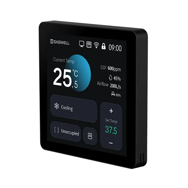 The Saswell 4-inch Color PLC HMI is a dedicated interactive terminal engineered to complement our VAV controller series. It is not a standalone universal display, but a core component of our open-architecture VAV strategy. By pairing this HMI with our controllers, OEMs can deliver a professional, branded solution that rivals Siemens, Johnson, or Honeywell in performance while offering far greater flexibility in hardware selection and visual identity.