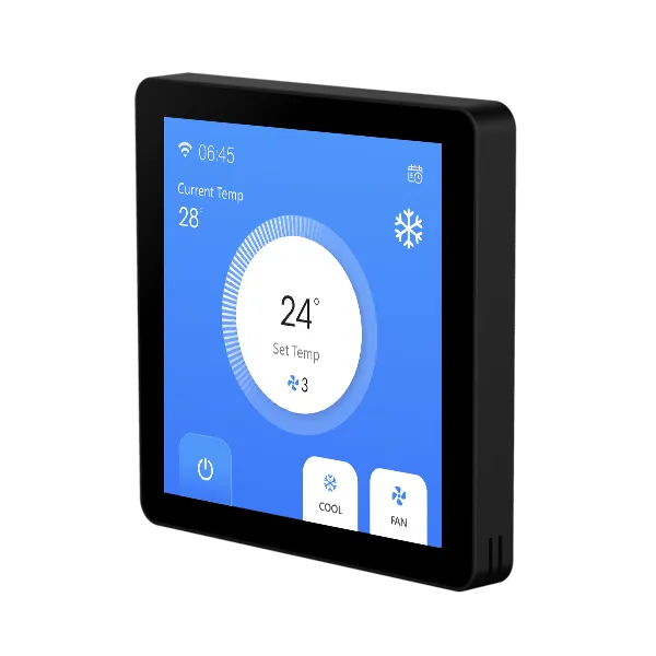 The SAS965FCH is a next-generation intelligent terminal, merging premium aesthetics with powerful functionality via an intuitive 4-inch color touch screen. Engineered specifically for reversible hydronic heat pump systems in Europe, it leverages standard Modbus-RTU for seamless BMS/EMS integration. The controller provides precise output for both FCU and floor heating, while its built-in dew point display supports vital anti-condensation strategies. This superior solution maximizes system SCOP and delivers unparalleled indoor climate control for A+++ residential projects.
