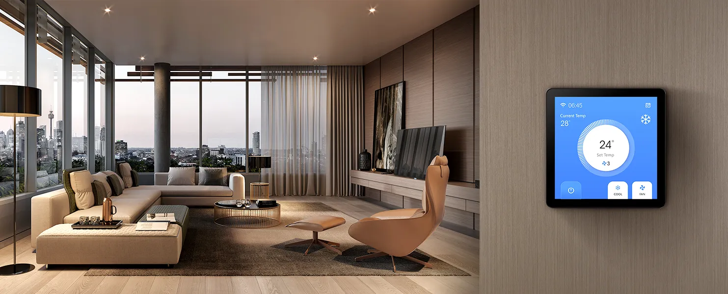 The SAS965FCH controller is the definitive solution for high-comfort climate control in European residential settings, especially where aesthetic design and energy efficiency are paramount. Key applications include: new build villas and premium apartments utilizing reversible HP hydronic systems for precise FCU and floor heating zone control; and deep energy retrofit projects requiring an integrated cooling/heating system with anti-condensation capabilities. Its Modbus integration makes it the ideal choice for advanced residential projects connecting to central EMS or smart home platforms.