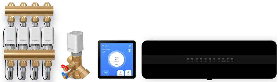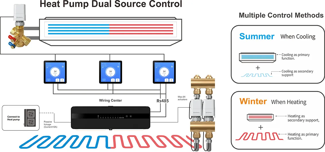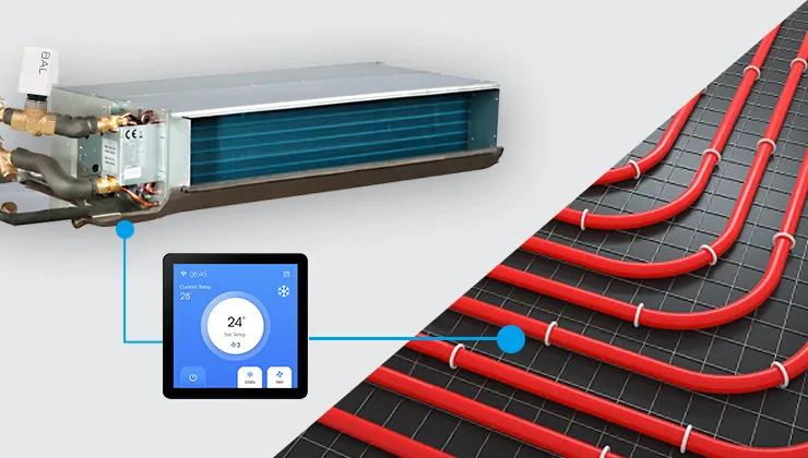 The system is designed with sophisticated synergy logic. It prevents thermal conflict by intelligently switching between modes—utilizing FCUs for rapid cooling/dehumidification and underfloor loops for silent, comfortable heating, ensuring premium indoor climate control.