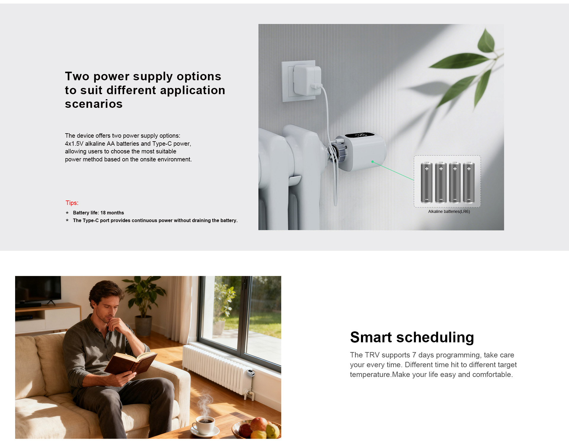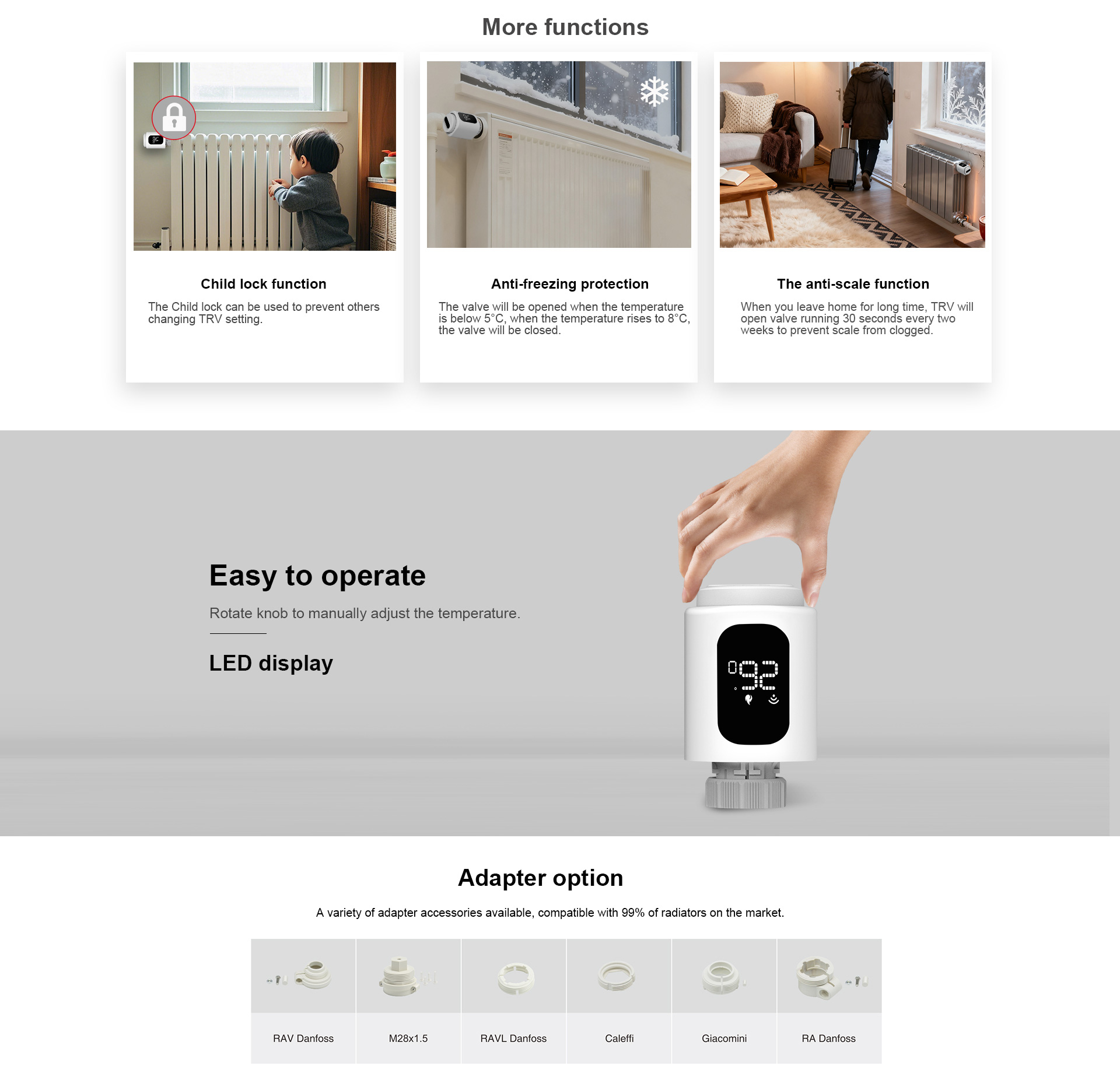 Powered by four AA batteries with an 18-month lifespan, it is compatible with 99% of radiator valves.